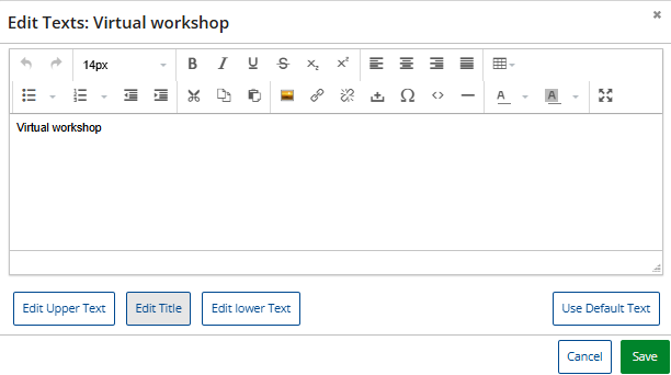 If you click just below one of the 3 texts, 'Upper text', 'Title' or 'Lower text', you can add/edit the corresponding text. -