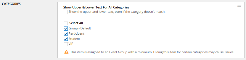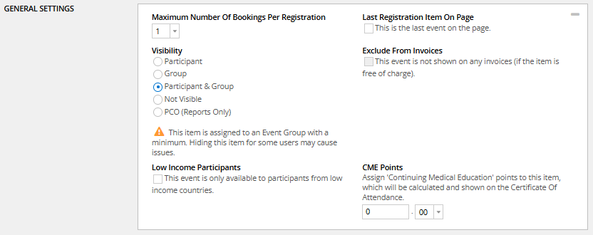 The default setting is ‘Registration Item Groups’. Click here for more info about event relations.