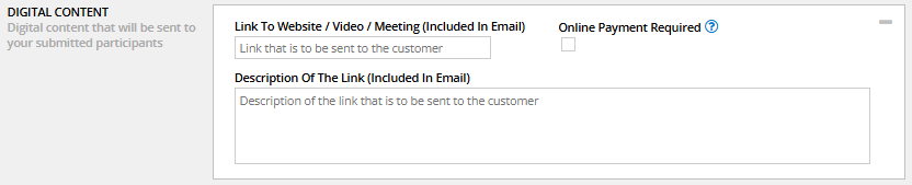 For example, if you have virtual workshops for which a participant must register and you want to immediately send them a link for the workshop, you can enter the information here.