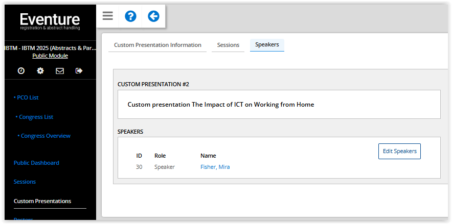 On the last tab 'Speakers' all speakers of this custom presentation are shown.