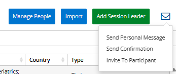 You can also invite your session leaders to your participant registration website by clicking the 'Invite To Participant' option after clicking the envelope icon at the top of the page. Here you can select the session leaders you would like to invite, assign them a category if applicable, then send out the invitation email.