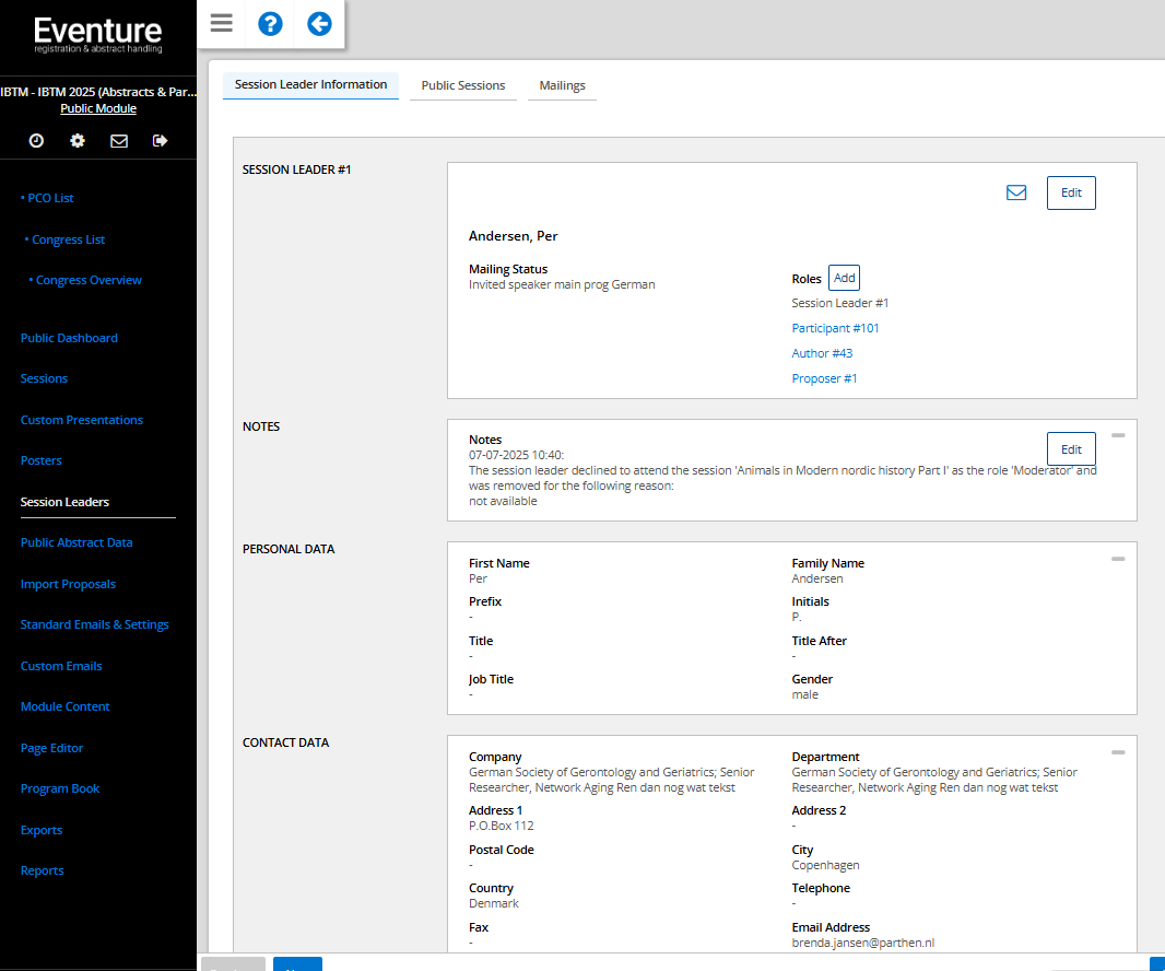 When you edit a session leader, you can change the details. Please use the edit button to make changes.