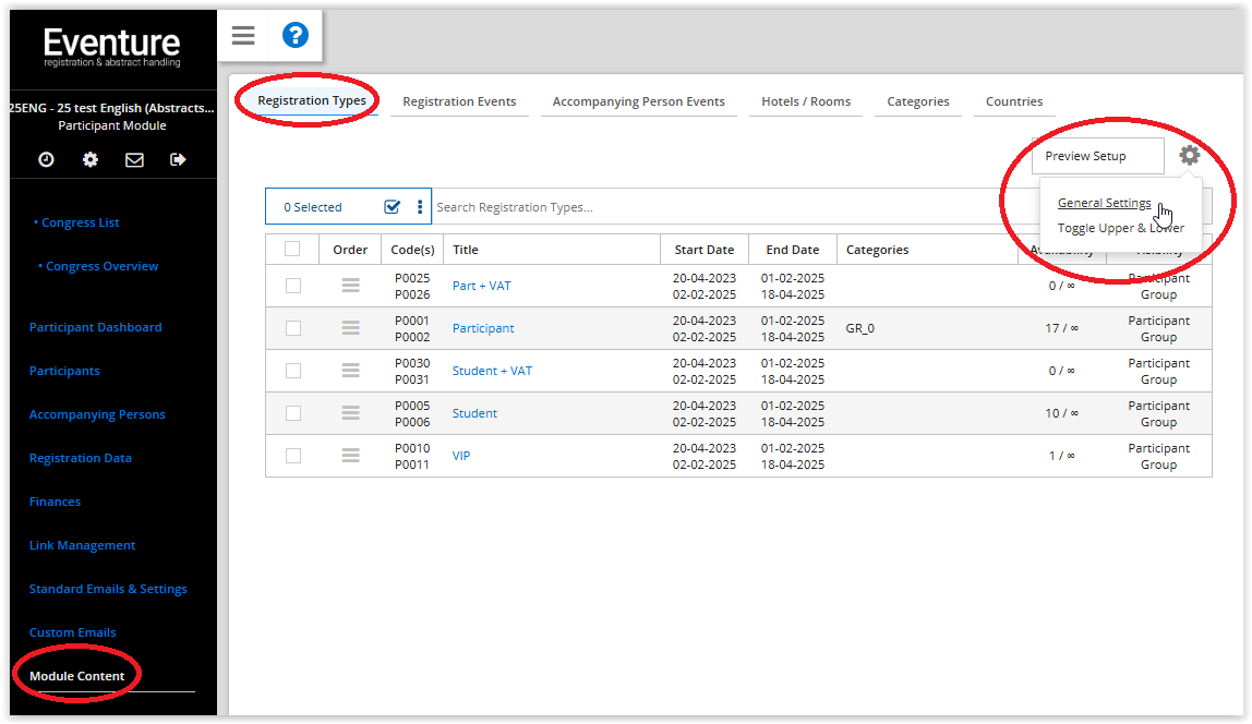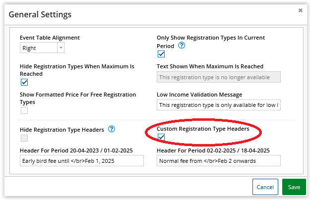 Some congresses have an early and a late fee. You can change the date text above the payment period(s).