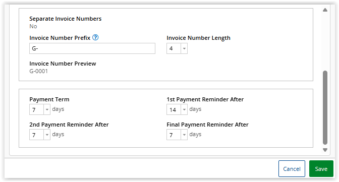 Group invoices and credit notes have their own unique numbering sequence, separate from the participant invoices and credit notes. You can only change this setting if no invoices have been created yet.
