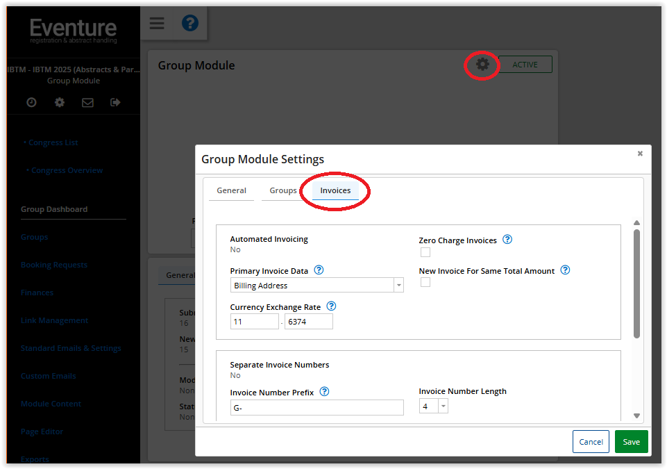 Group invoices and credit notes have their own unique numbering sequence, separate from the participant invoices and credit notes. You can only change this setting if no invoices have been created yet.