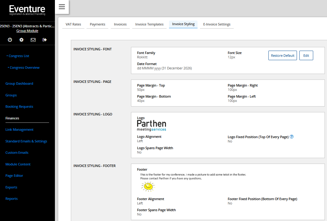 Please note that the settings and changes you make to the group invoices have no effect on the participant invoices.
