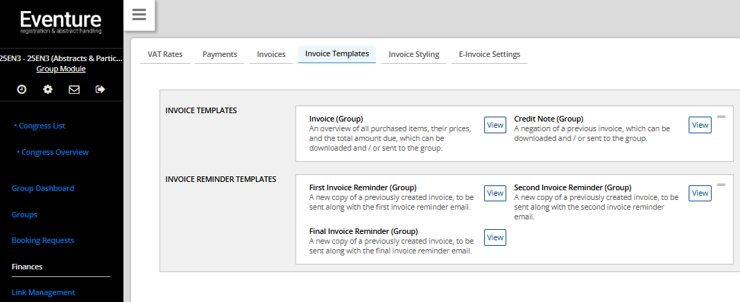Please note that the settings and changes you make to the group invoices have no effect on the participant invoices.