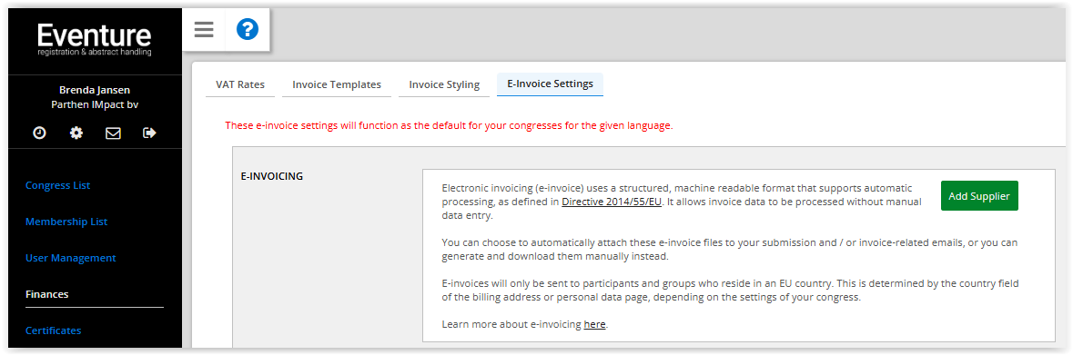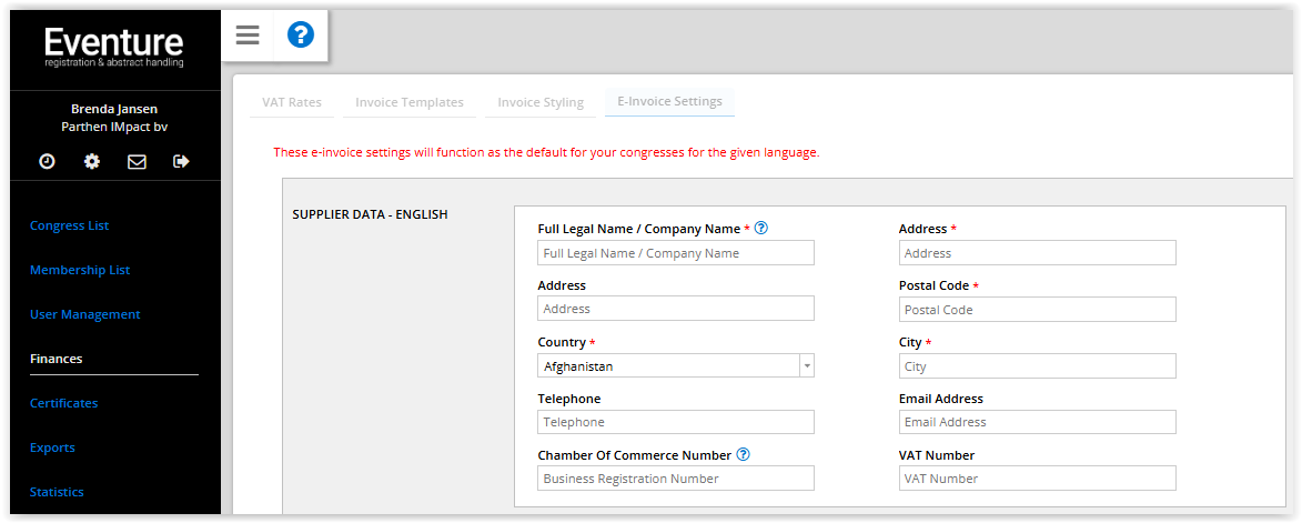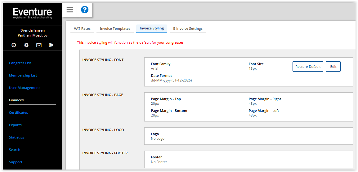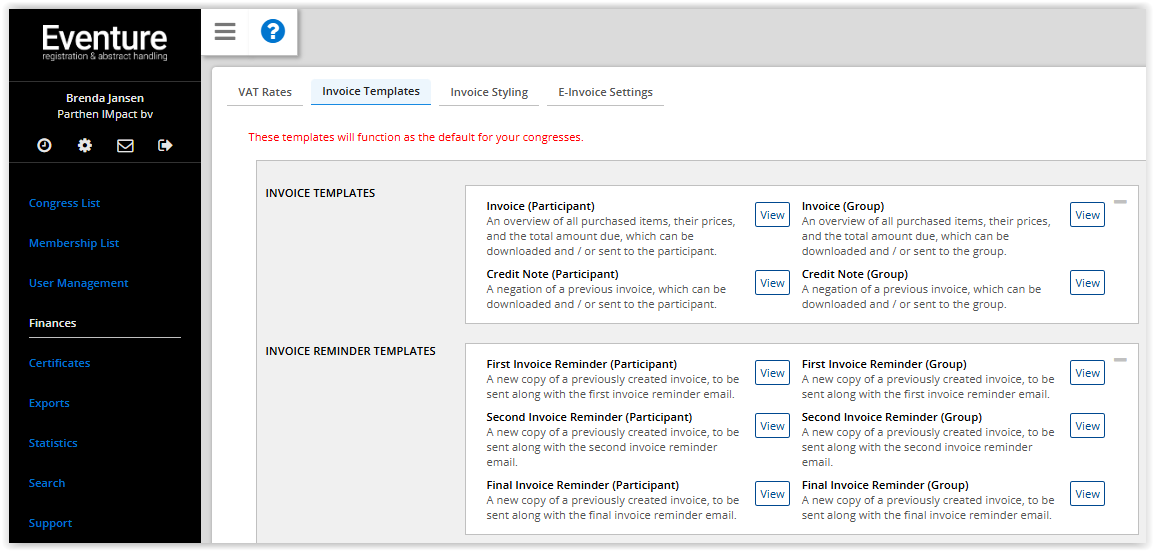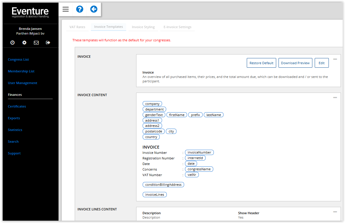 Create an invoice template for all congresses