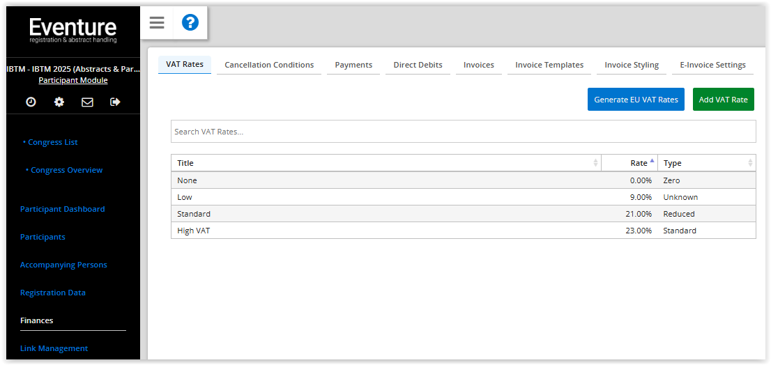 On the VAT rates tab you can set up your VAT. Click here for more info.