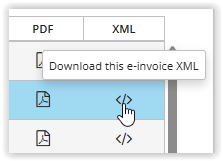 | Use the xml tag icon do download the e-invoice of this participant. By using the 'Download all e-invoices' button, you can download all e-invoices in a zip file. |
