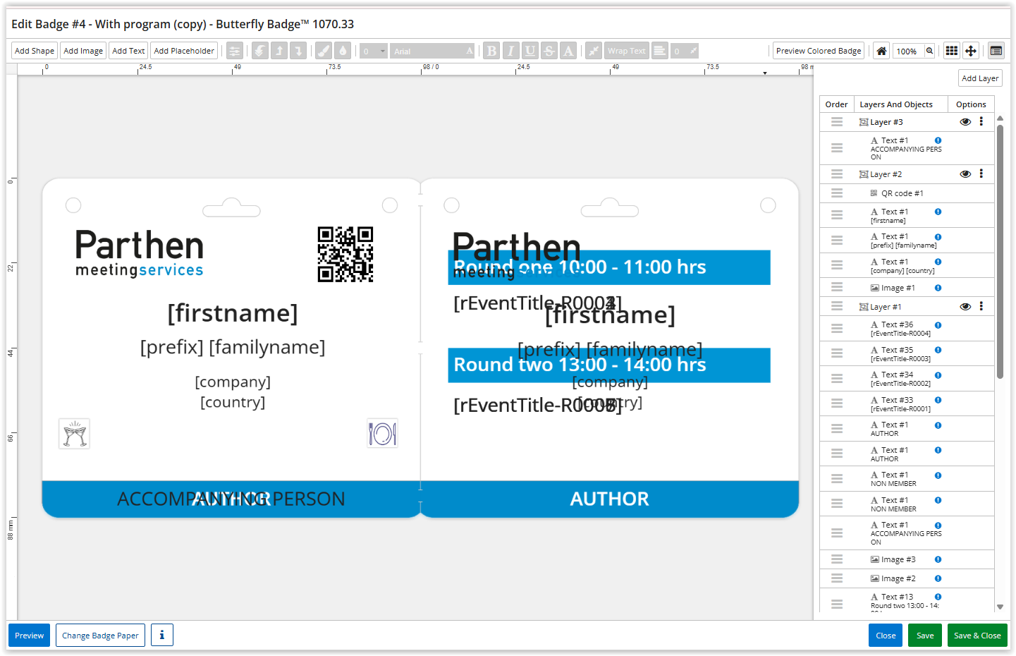 When you want to use different designs in your badge for different categories/types of participants, you can use layers.