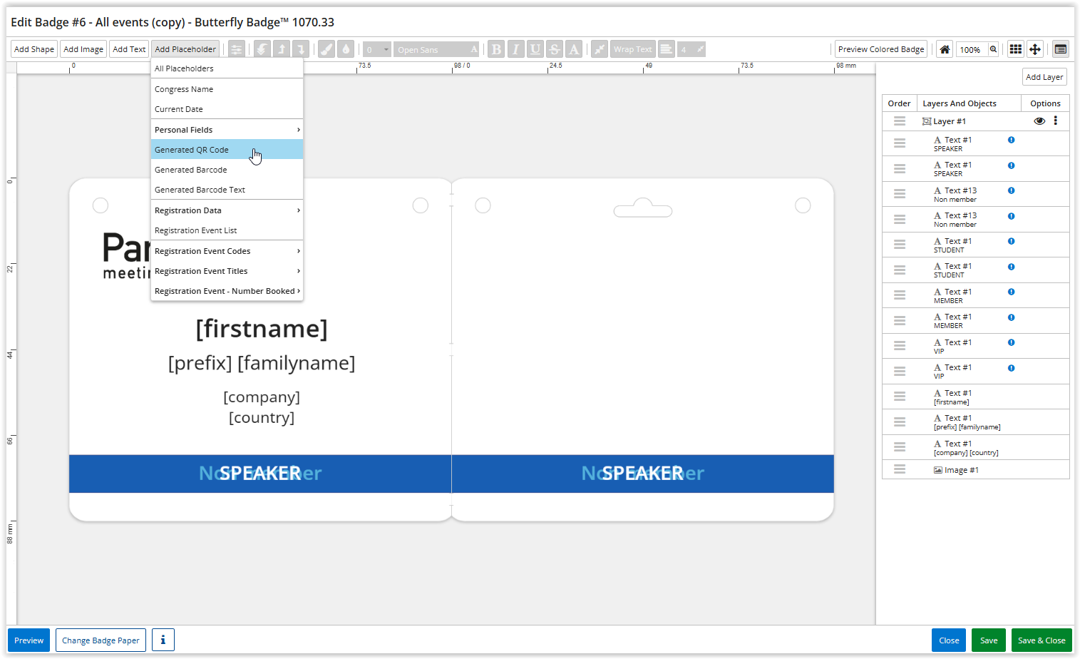 Add the QR code on the online badge
