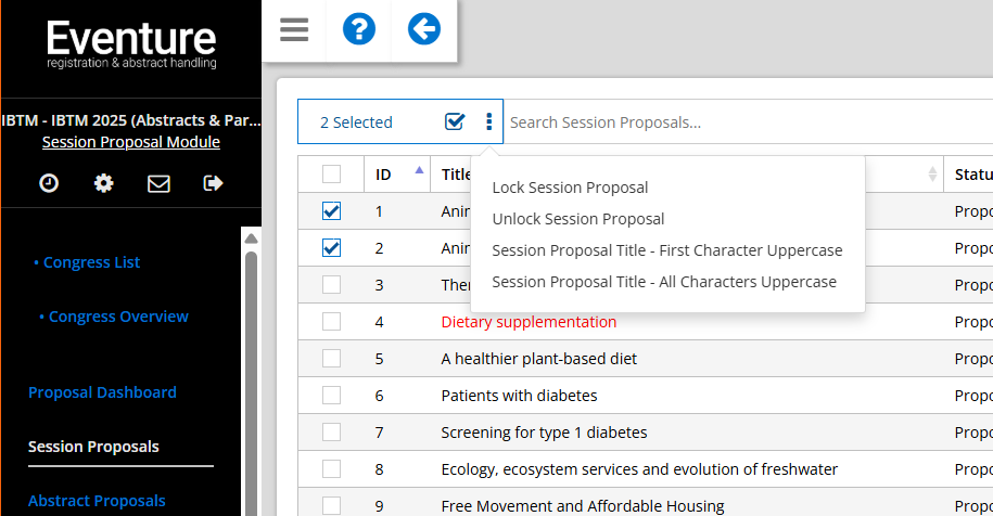 Now select 'Lock session proposal' to lock all proposals, or select 'Unlock session proposal' to unlock all proposals.