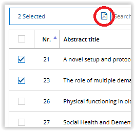 It is also possible to select one or more abstracts/session proposals/grant applications and click the PDF icon at the top of the screen.